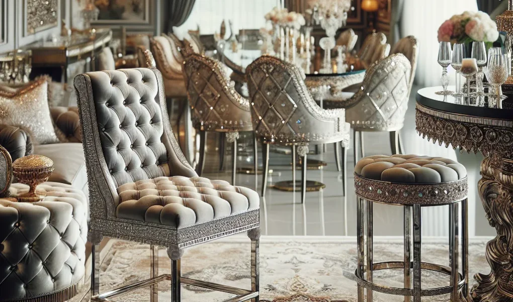 Luksusowe meble do salonu i jadalni to synonim prestiżu oraz wyrafinowanego smaku, a wykwintne krzesła w stylu glamour do jadalni stanowią idealne dopełnienie tej aranżacji. Tapicerowane hokery i krzesła w stylu glamour nie tylko zapewniają najwyższy komfort, ale również wprowadzają do wnętrza nutę elegancji i luksusu, która przyciąga uwagę każdego gościa. W jadalni, gdzie spożywanie posiłków staje się rytuałem, wybór wykwintnych krzeseł w stylu glamour podkreśla unikalny charakter przestrzeni, dzięki czemu każde spotkanie staje się wyjątkowe. Wyselekcjonowane materiały, takie jak miękka tkanina czy luksusowa skóra, w połączeniu z okazałymi zdobieniami i precyzyjnym wykonaniem, tworzą atmosferę niepowtarzalnej klasy i wyrafinowania. W nowoczesnych aranżacjach wnętrz coraz większą uwagę przykłada się do detali, dlatego luksusowe meble do salonu i jadalni doskonale wpisują się w aktualne trendy wnętrzarskie, oferując jednocześnie funkcjonalność i designerski styl. Dzięki nim cała przestrzeń nabiera charakteru, a każdy element – od tapicerowanych hokerów aż po wykwintne krzesła w stylu glamour – staje się nie tylko praktycznym elementem wyposażenia, ale przede wszystkim prawdziwym dziełem sztuki, które odmienia oblicze Twojego domu.